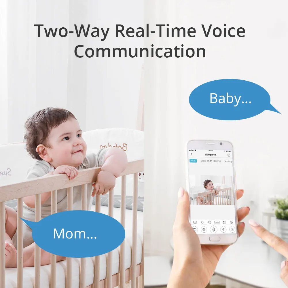 Chiaro A due Vie Audio Con l'altoparlante e il microfono, la telecamera IP supporta due vie di comunicazione. È possibile scoraggiare gli intrusi, parlare con uomo di consegna, avere conversazioni chiare con la vostra famiglia e il comando il vostro animale domestico, anche quando si è lontani.