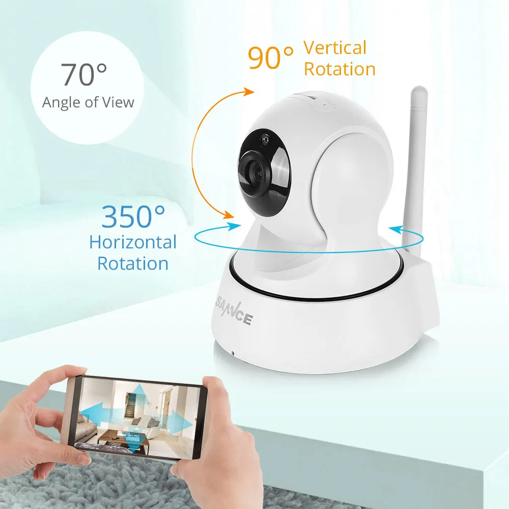 Pan/Tilt Macchina Fotografica con Ampia Copertura Con 350 ° in orizzontale e 90 ° di rotazione verticale gamma, camera SANNCE IP della macchina fotografica crea quasi panoramica di monitoraggio di tutta la stanza, cattura scene da tutti i diversi punti di vista e foglie quasi senza punti ciechi.