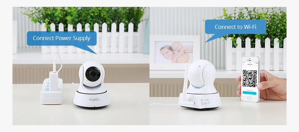 Stabile Connessione WiFi Collegare la telecamera IP per la rete attraverso 2.4 GHz WiFi, si può avere un facile controllo sopra la macchina fotografica senza fili a distanza. Di Sonic di corrispondenzaE di aggiungere al app, quindi avviare in streaming sul tuo telefono cellulare e tablet, monitorare la vostra casa, non importa dove ti trovi.