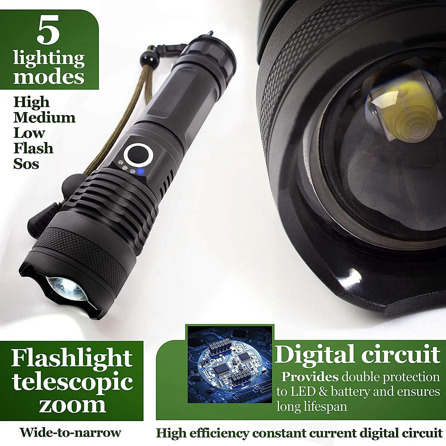 Best Price Comparison With Potente Torcia A LED Con XHP 70.2 branello Della Lampada Zoomable 3 modalità di illuminazione LED Torcia Supporto per Mircro di ricarica lampada di caccia