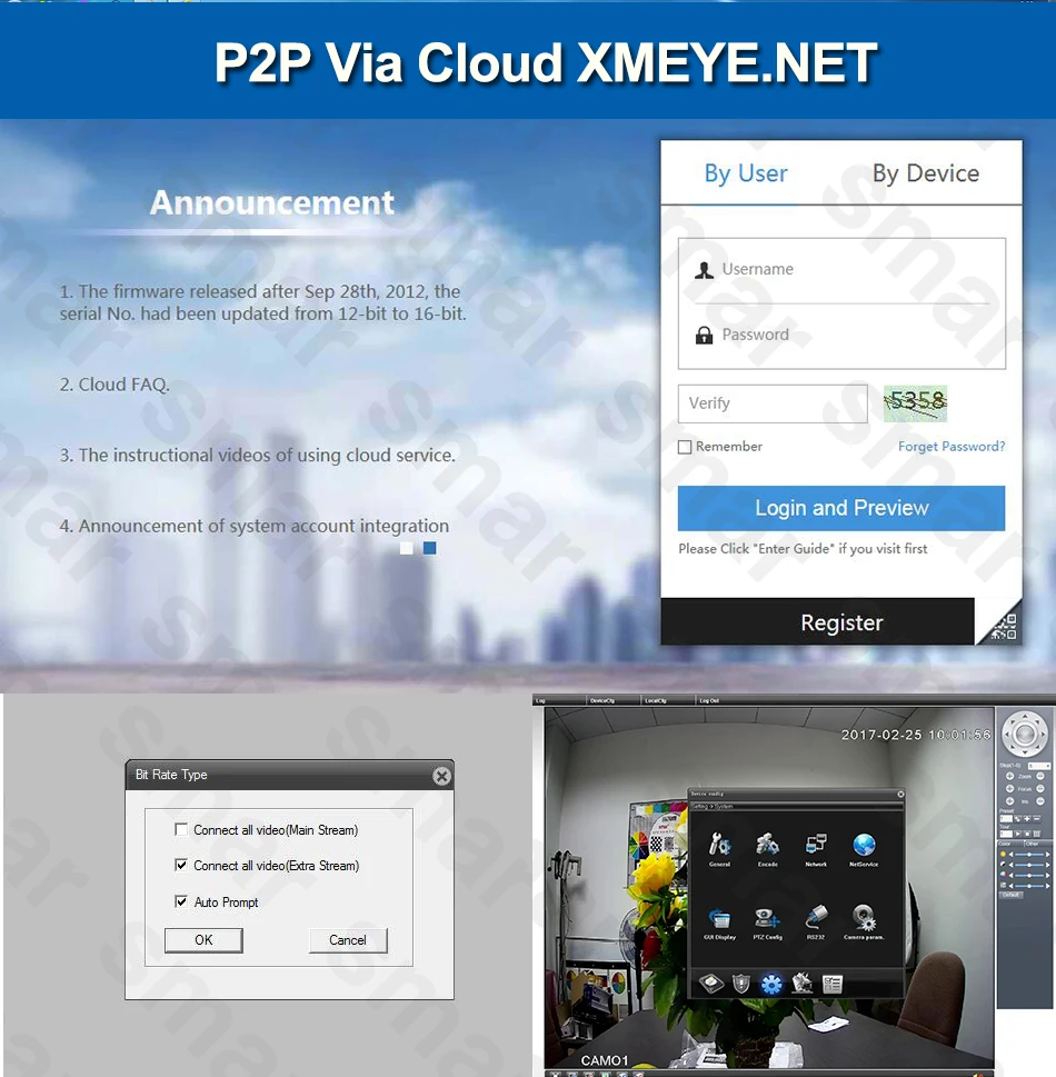 Passo su Internet: Con XM servizio cloud, facile da ottenere una varietà di rete penetrazioni, un passo per il monitoraggio remoto, sbarazzarsi di varie impostazioni di rete complesse, facile e semplice da usare.