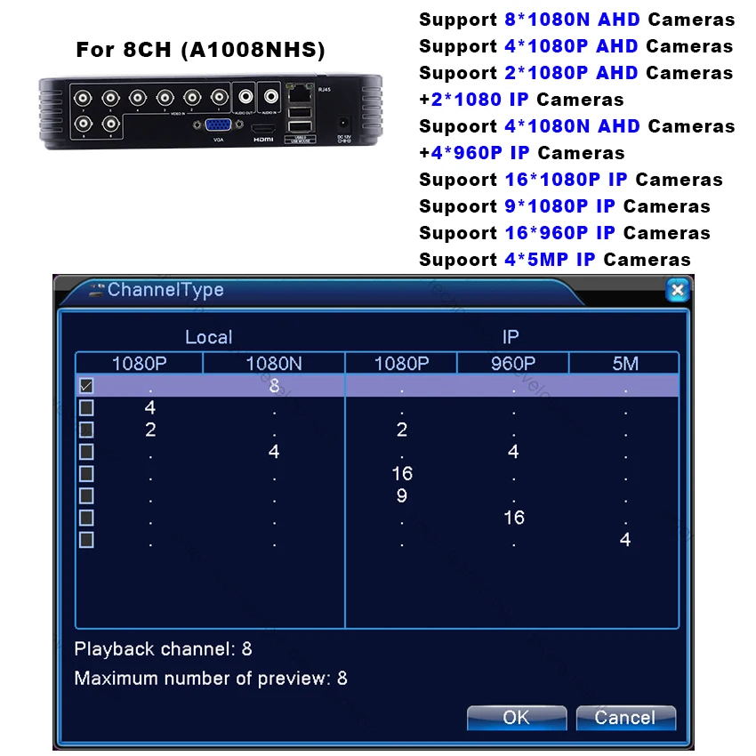 | 5 IN1 AHD 1080N 4CH 8CH CCTV DVR Mini DVR 5IN1 Per CCTV Kit VGA HDMI Sistema di Sicurezza Mini NVR per 1080P Macchina Fotografica del IP Onvif DVR PTZ |