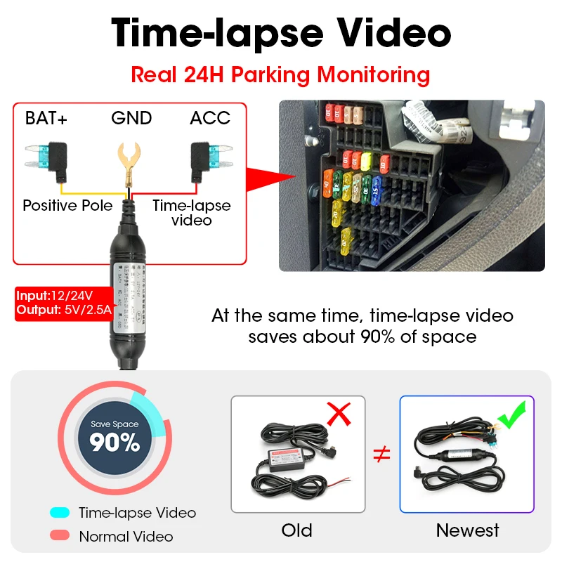 Se DVR essere scioccato da qualsiasi delle forze esterne come un ladro durante il parcheggio, E 'La Modalità di Parcheggio funzione si accende per la registrazione automaticamente (ricordo Caldo, dovrebbe essere usato con cavo di alimentazione)