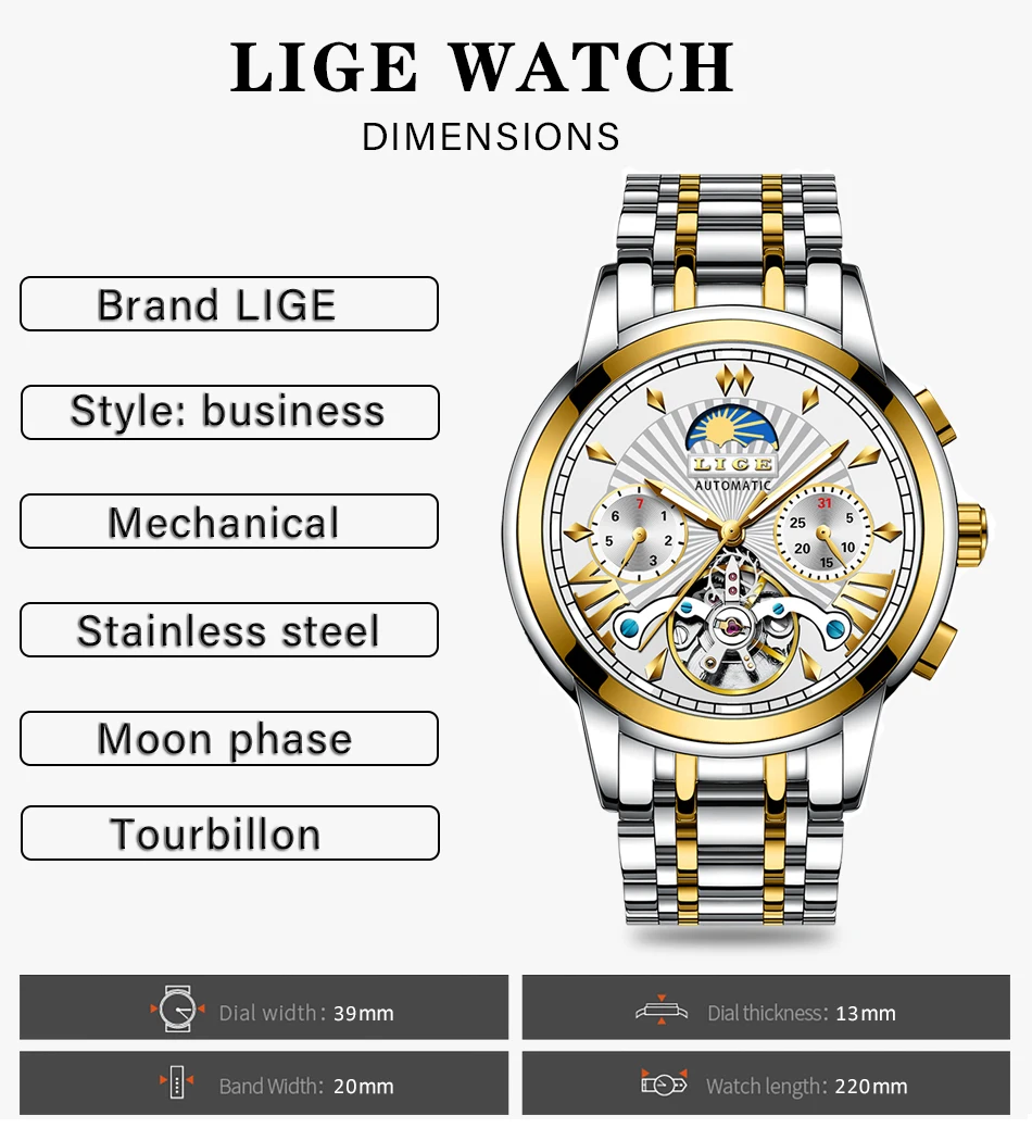 The best product you are looking for is "LIGE Negozio Ufficiale di Mens Orologi Top Brand di Lusso Meccanico Automatico Affari Orologio In Oro Uomini Della Vigilanza Reloj Mecanico de Hombres". This product is available and ready to be purchased. Get attractive discounts every time you shop in our store (aliexpress.com). Aliexpress also provides a coupon of $ 3 for the first buyer to shop there. don't forget to bookmark our store page so you can go shopping again anytime..