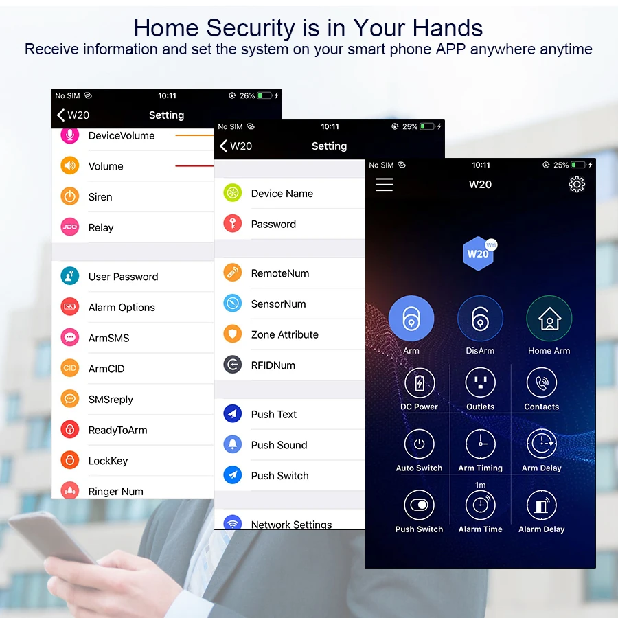 1. Wireless studio 1527 accessori di serie, e per quanto 99 rivelatori e telecomandi 2. controllare tanto come 20 prese intelligenti tramite App, telefono o SMS in remoto, per realizzare elettrodomestici intelligenti di controllo remoto